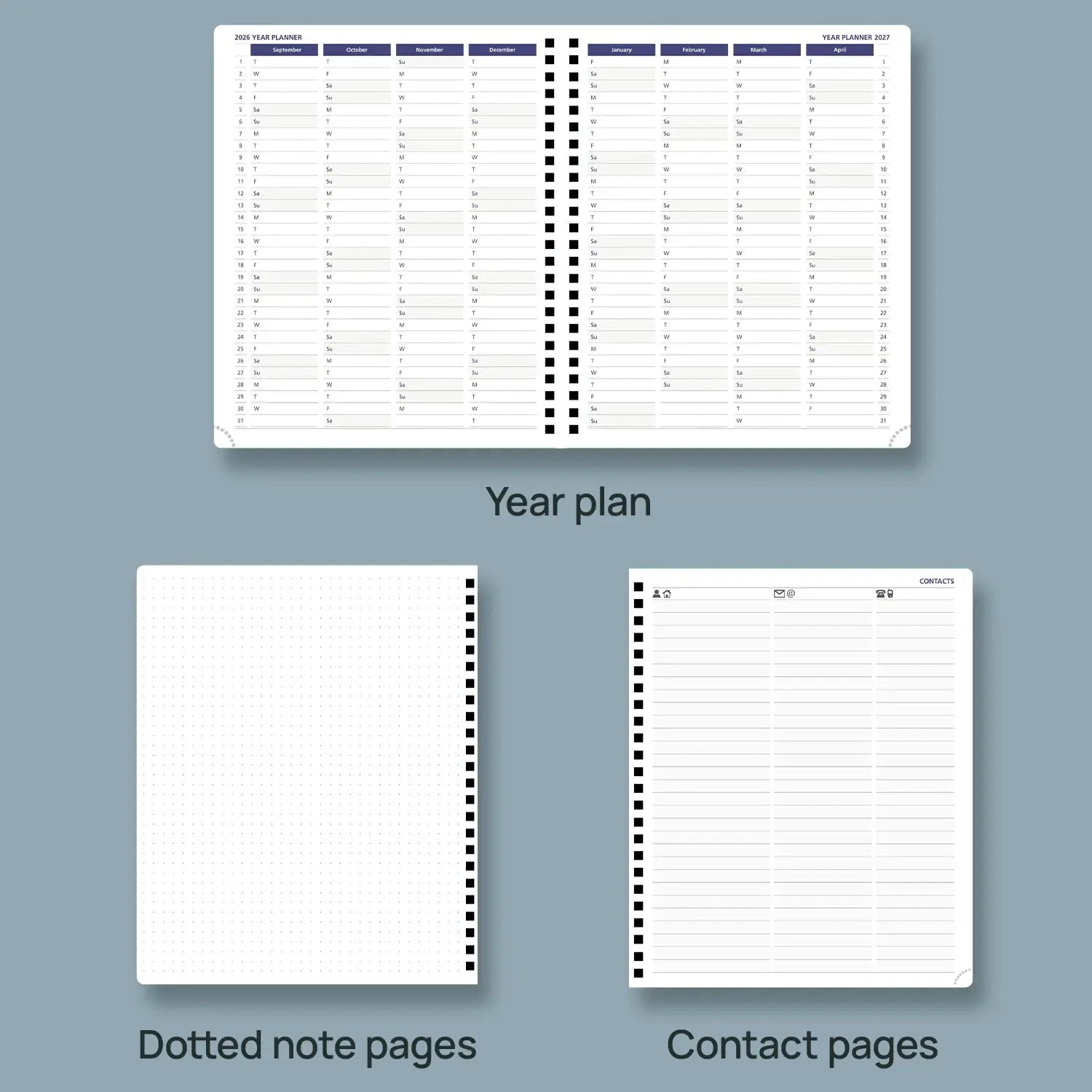 - Layout: Vertical, 2 pages per week