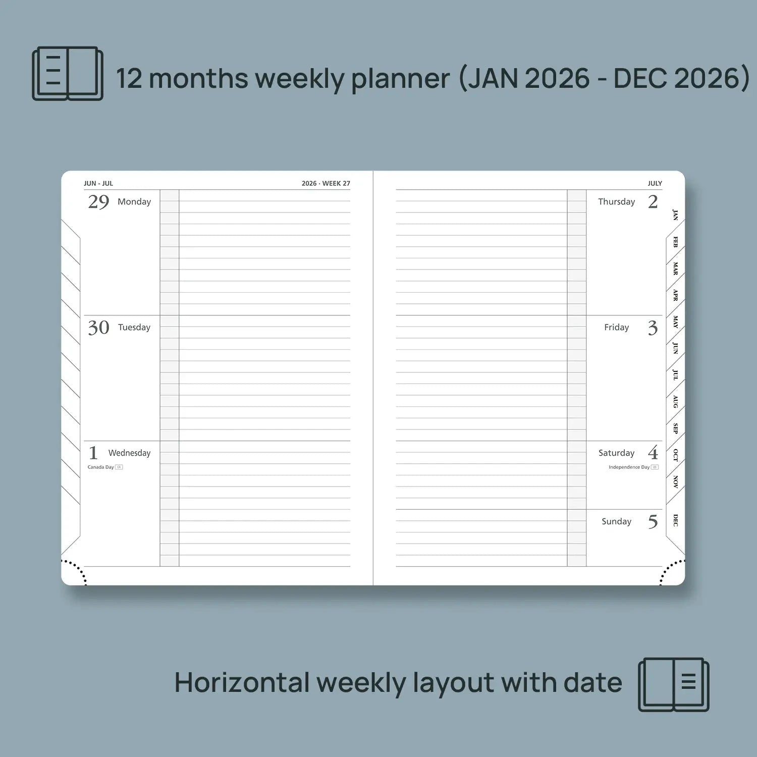 UK 6.75x8.75 Weekly Planner 2026 Horizontal Layout Calendar Planner