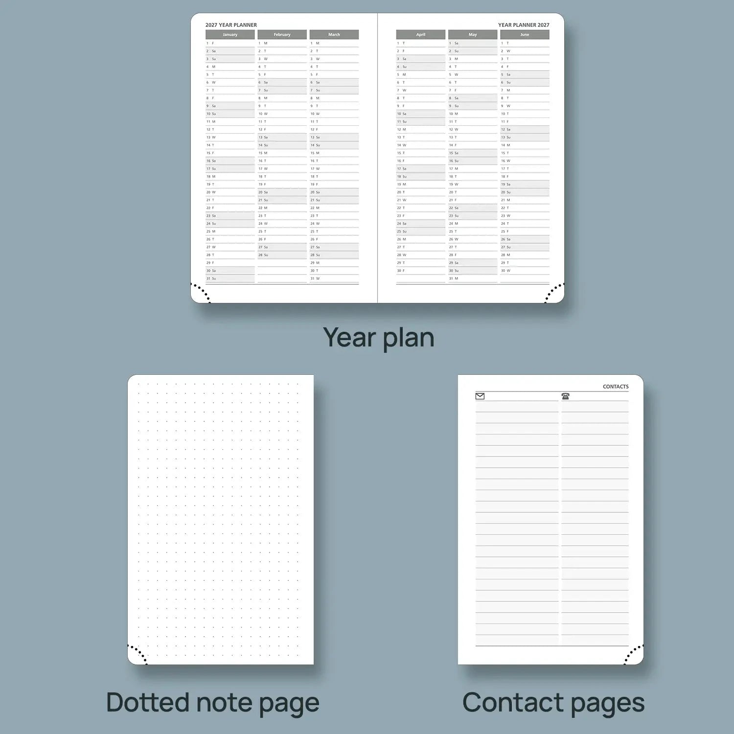 POPRUN 12 Month - Softcover Daily planner Keep your work and personal life in balance with our 12-month daily planner. It features a clear daily layout that allows you to efficiently plan your daily tasks and goals, whether for work or personal matters. The day view gives you a quick overview of your daily to-do list, while the 12-month planner view helps to schedule long-term activities and goals. This planner is designed to keep you organized even with a busy schedule. |
