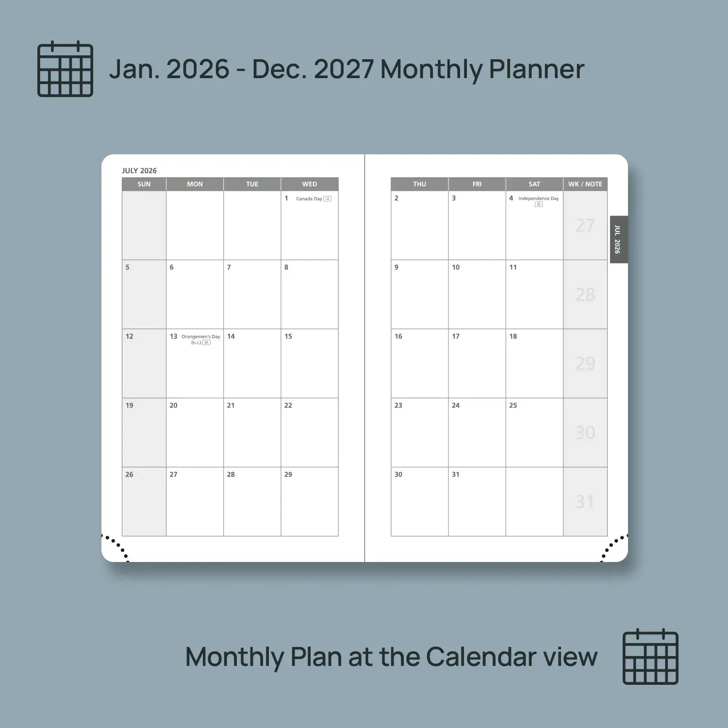UK Pocket Size 24-month Monthly Planner 2026-2027 Soft Cover Calendar Planner