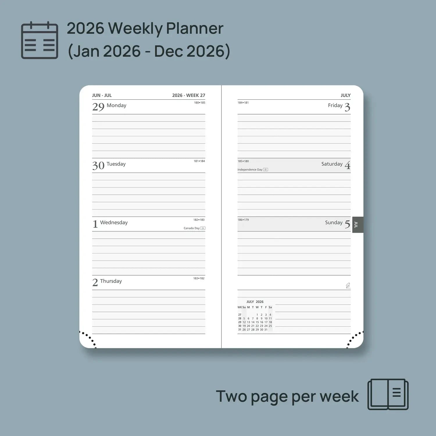 UK Pocket Size Weekly Planner 2026 Hard Cover Calendar Planner