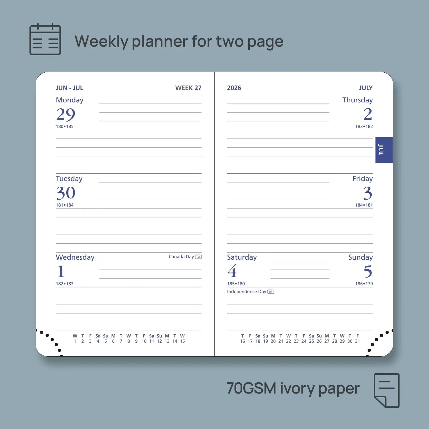 UK Mini Size Weekly Planner 2026 Soft Cover Calendar Planner
