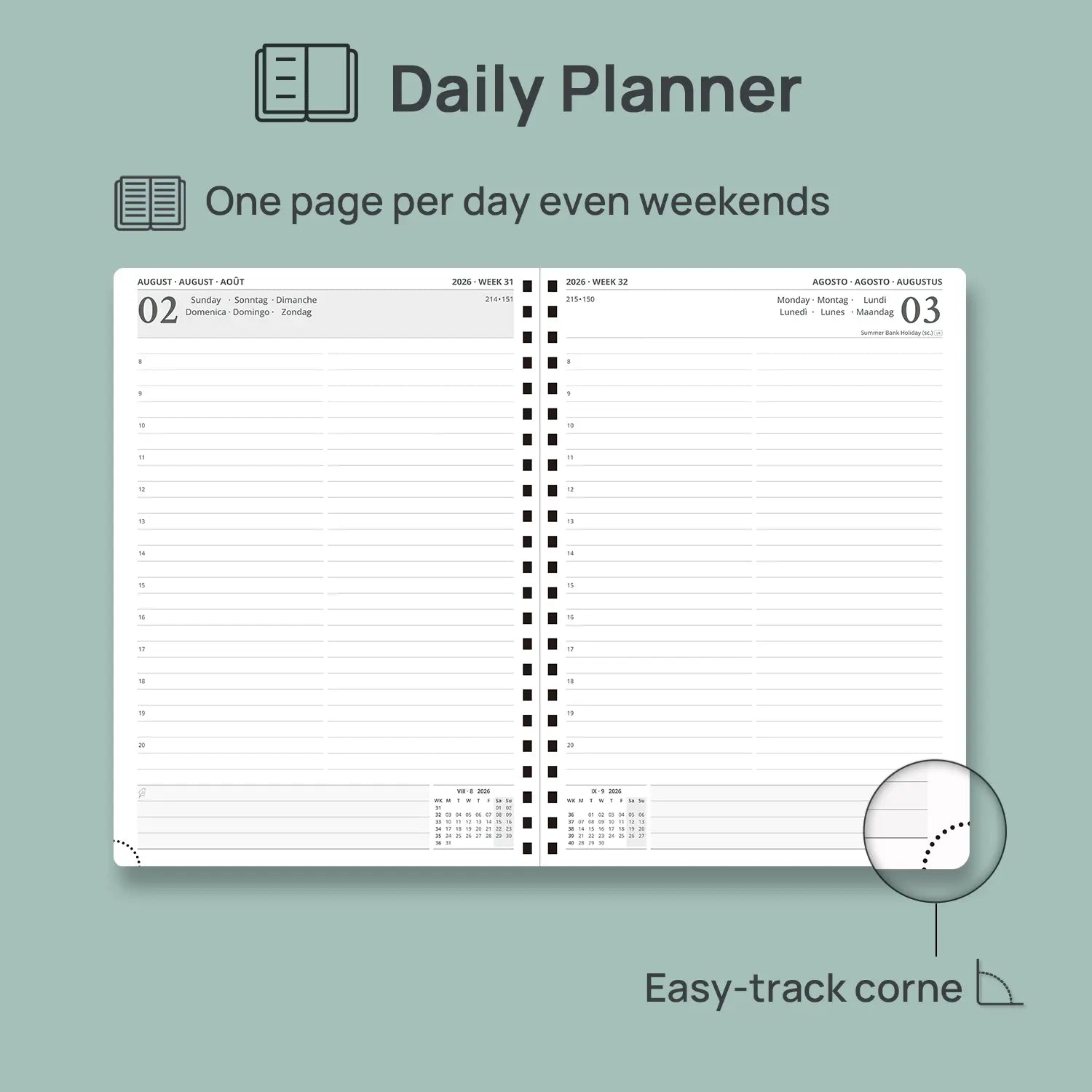 An A4 daily planner gives you generous room to write — ideal for desk-based planning, detailed schedules, and seeing your entire day clearly at a glance.
